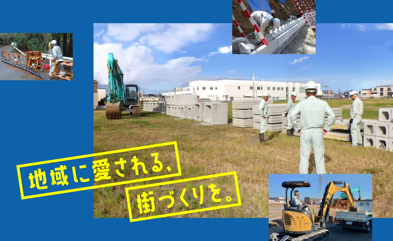 当社は、公共・民間を問わず、土木工事・舗装工事・河川工事・エクステリアを中心に幅広い事業をてがけ地域のインフラ整備や街づくりに貢献しております。